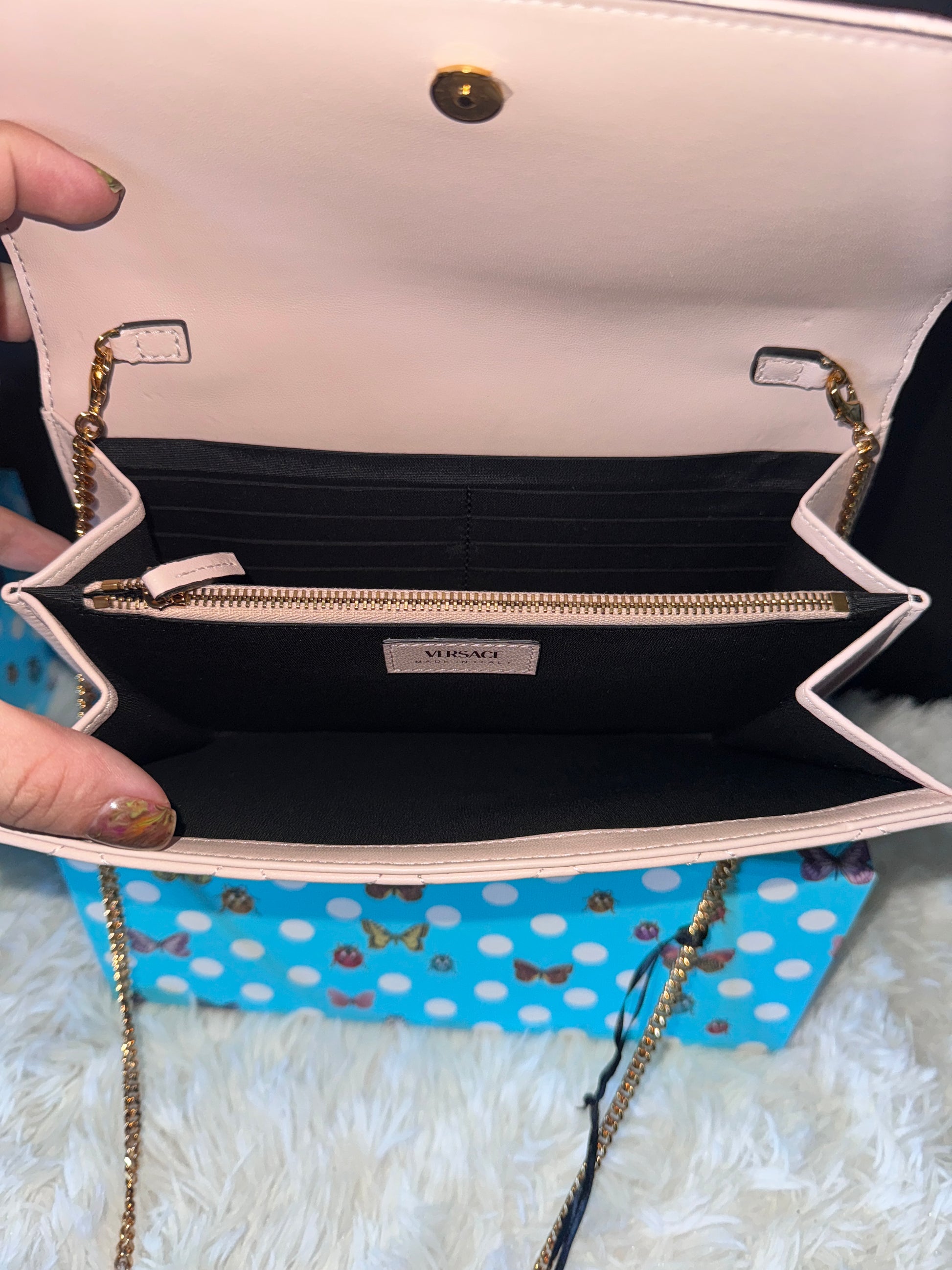 Versace Pink Quilted Lamb Nappa Leather Wallet on Chain
